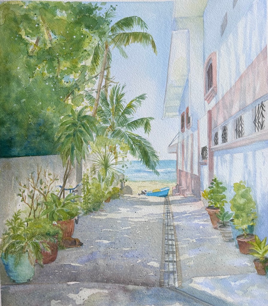 A self-taught watercolor artist, I love to paint portraits and the stunning landscapes and vibrant oceansides. I’m drawn to realism as a way to capture the ordinary of each scene and show what I see. I paint slowly, adding subtle transparent layers until I see what I want to see. Each painting is a slow, patient journey.